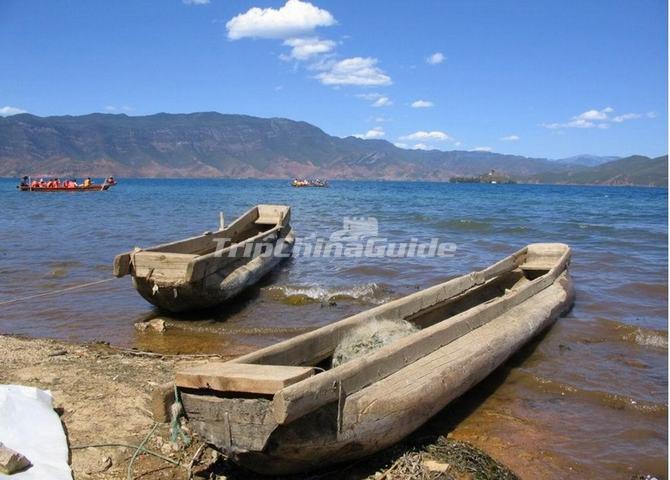 The pig-trough boats of Mosuo People in Lugu Lake