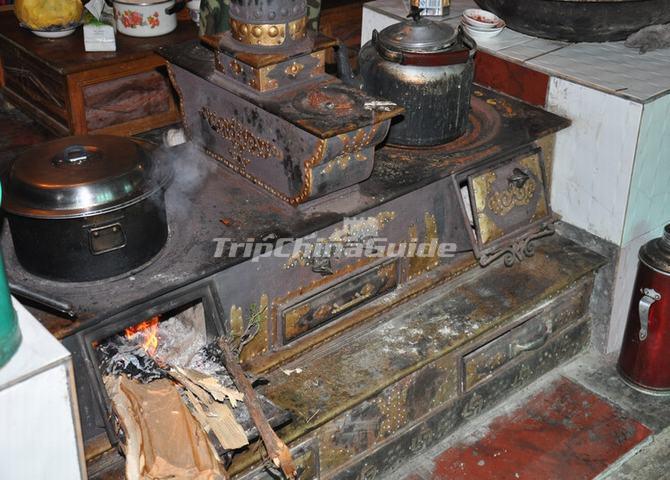 The Brass Stove in a Tibetan Family in the Zhima Tibean Village.